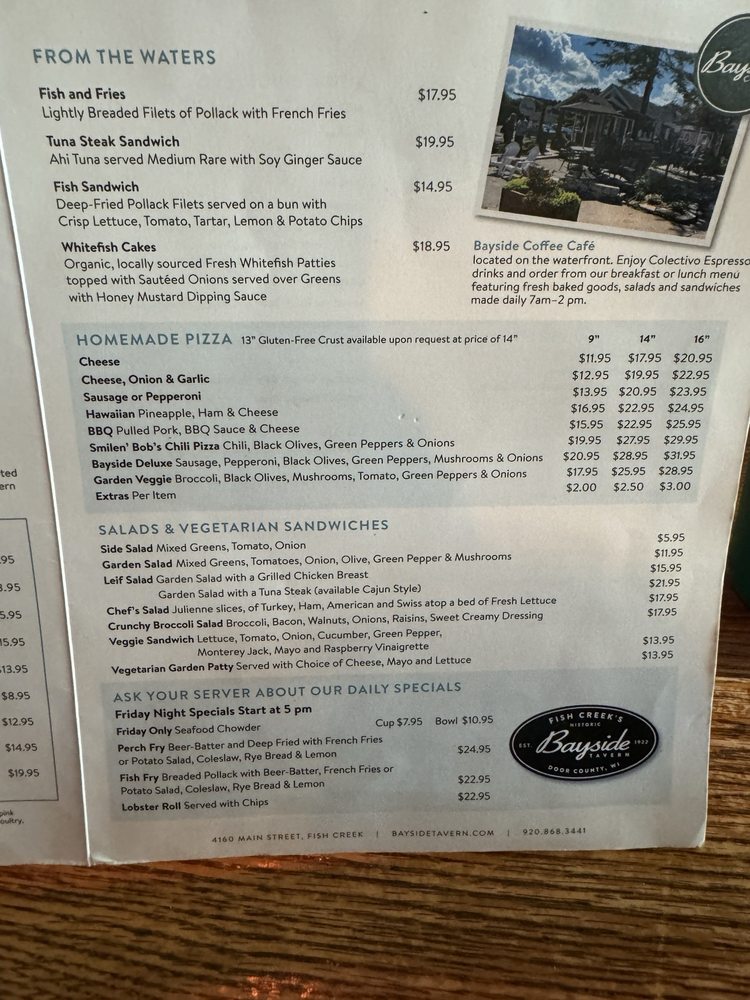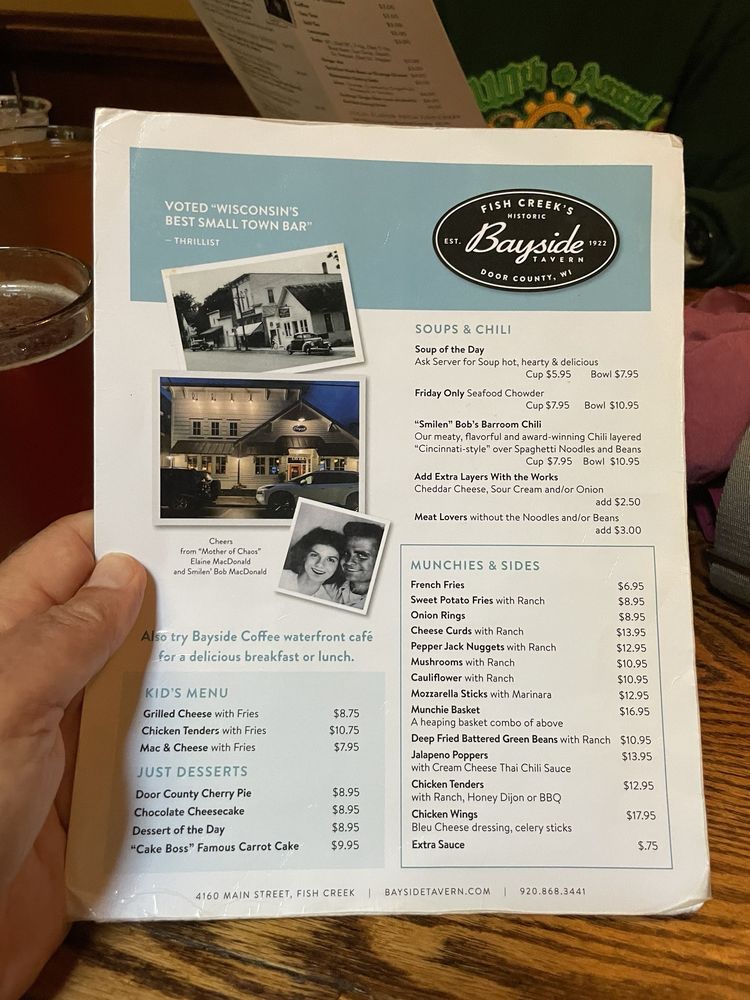 Introducing the menu at Bayside Tavern in Fish Creek, WI, where you can find a variety of delicious options. Their menu offers a range of mouth-watering dishes such as juicy hamburgers with grilled onions, savory Cincinnati-style chili, and satisfying sandwiches served with delectable fries. The cheese curds are a must-try and are highly recommended by satisfied customers. With a cozy and inviting ambiance, Bayside Tavern is a perfect spot to enjoy a meal while watching the game or catching up with friends. The tavern also offers excellent service, making it a popular choice for both locals and visitors. Don't miss out on the opportunity to experience the great food and friendly atmosphere at Bayside Tavern.